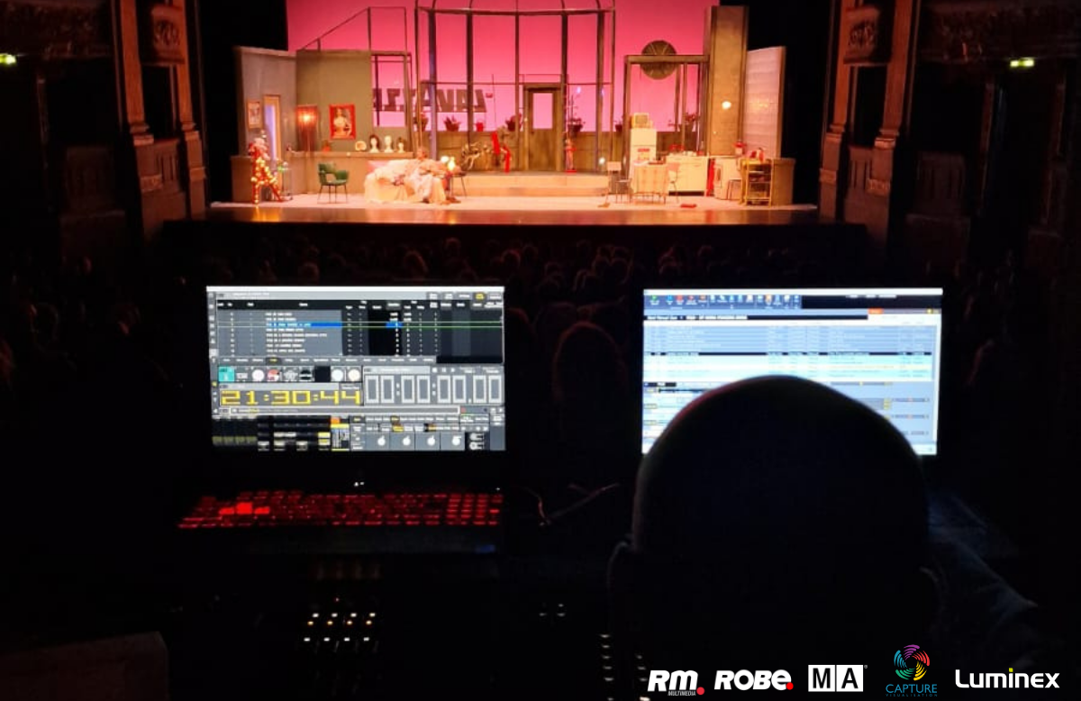 Il cuore del palcoscenico è stato illuminato da proiettori di altissima qualità firmati Robe, con 12 LED Beam 350, 12 LEDWash 600 Plus, 8 Profile T1, 8 Parfect 150 e 12 Divine 160. Un progetto basato interamente sulla tecnologia LED, tranne per le plafoniere e le lampade da tavolo che facevano parte integrante della scenografia, creando un mix armonioso tra modernità e tradizione.