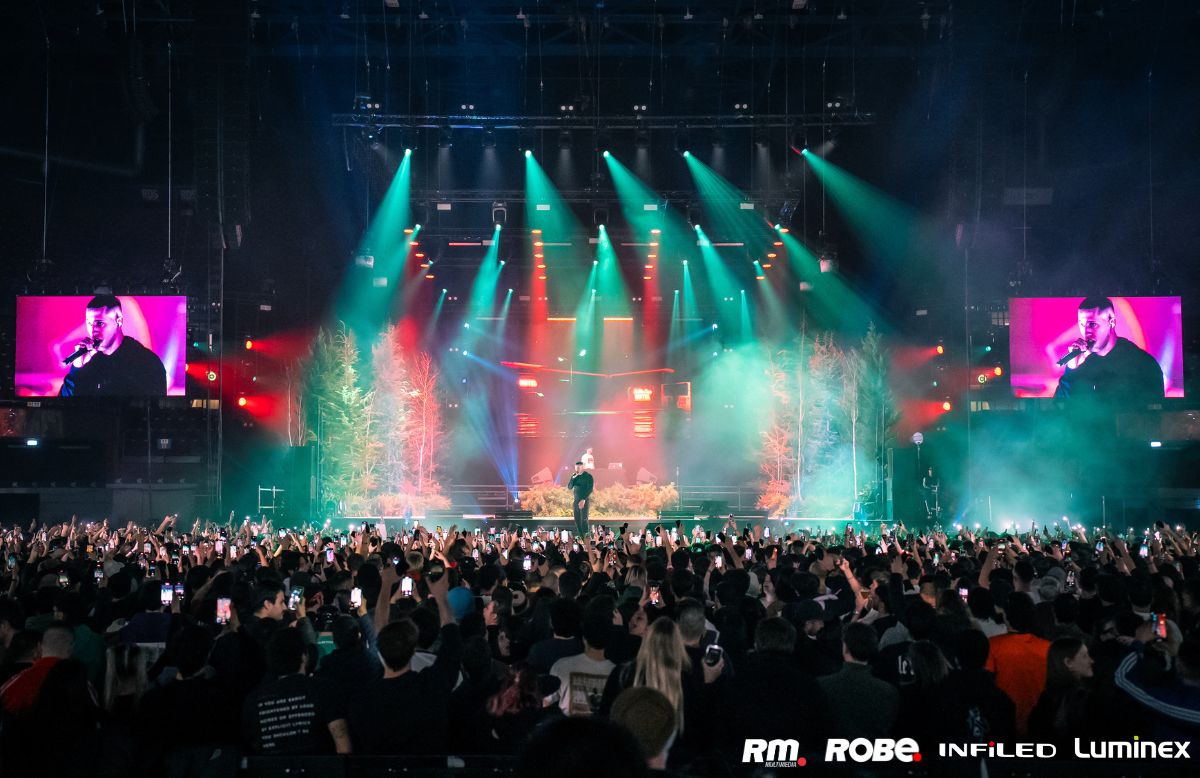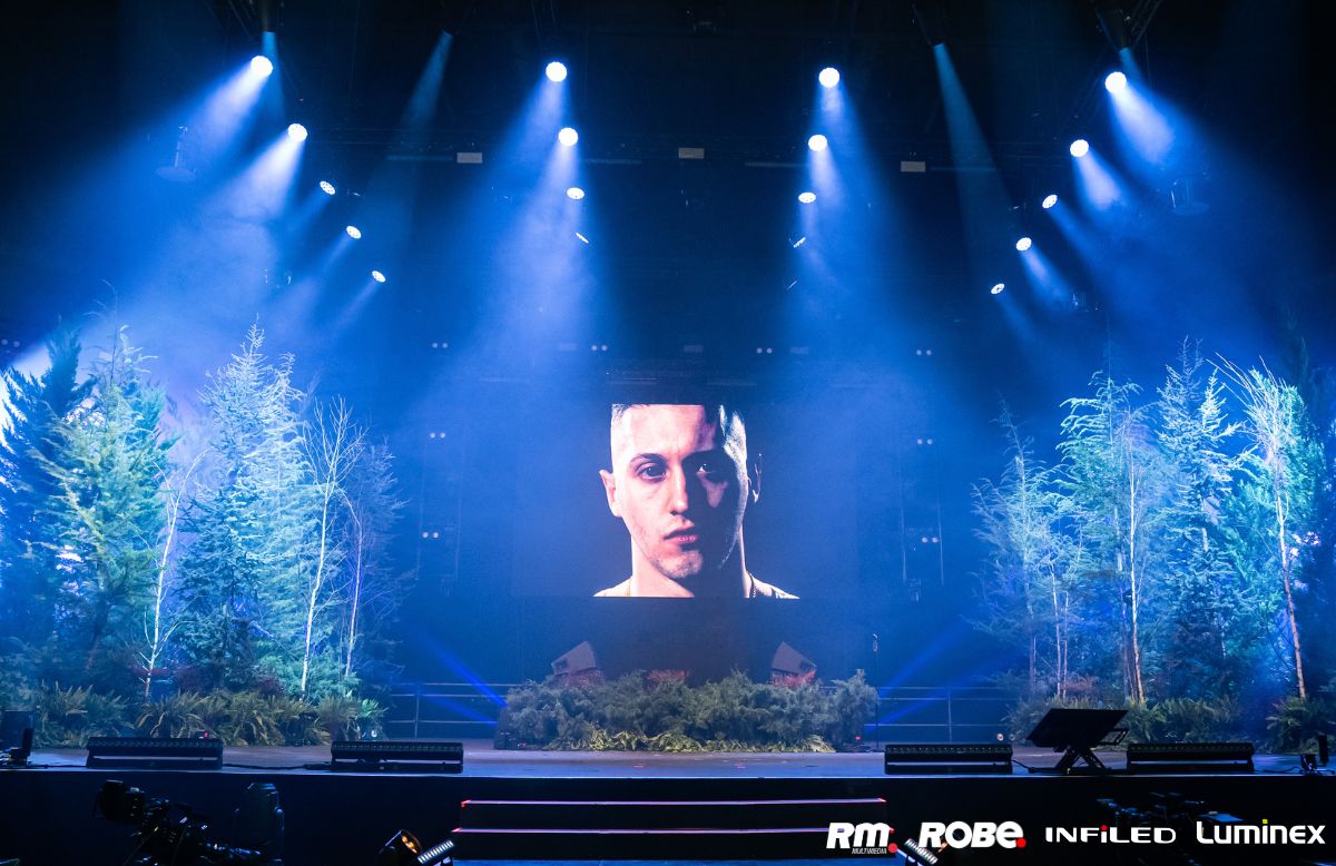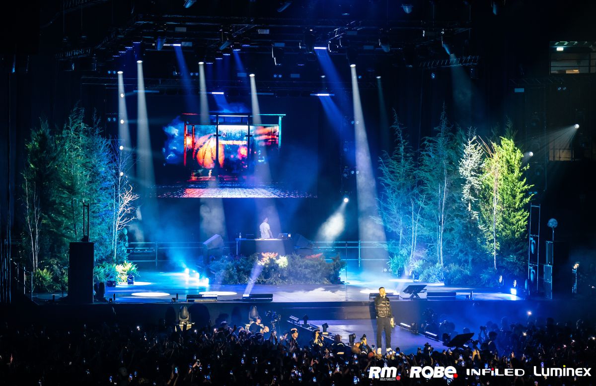 Il risultato finale è stato a dir poco originale e sorprendete: il palco del Mediolanum, infatti, si è trasformato davvero in un bosco, illuminato da numerosi prodotti della famiglia Robe. In dettaglio, sono stati scelti 38 Spiider®, 22 LEDBeam 150™, 24 FORTE®, 18 Pointe®, 4 X1 FT PRO™, 2 HAZE 500 FT Pro™.