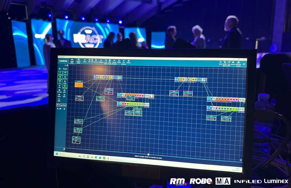 Tra le altre tecnologie protagoniste: una grandMA3 Light, 22 Robe Pointe, e l’intero network orchestrato con maestria grazie ai potenti GigaCore 12, 14 e 18t di Luminex.